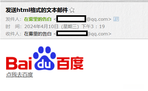与发送文本的流程、步骤均一致,构建邮件对象发生了变化
