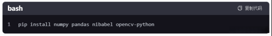 首先,确保安装了必要的Python库,如numpy, pandas, nibabel(用于处理NIfTI文件),以及opencv-python(用于图像处理)。