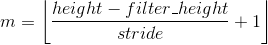 每张特征图上神经元的数目和 输入图的宽高、滤波器的宽高、滤波器的步长(stride)均有关,且等于原图上可取的滤波区域的数目。上面我们给出的例子里面由于滤波器的宽高为10x10且步长为10,所以没有两个滤波区域是重叠的,比较理想。一般情况下,就需要按下面的公式来算。设特征图的宽高分别是 n 和 m。