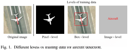 弱监督学习同样是基于CNN模型,在这种情况下仅需使用图像级别的弱标签来构建训练集。当标签只需判断图片中是否包含目标时,并且通过弱监督方法能够提取或利用相关信息(见下文),因此在训练过程中仅需少量人工标注的工作量。