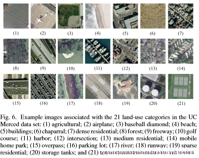 通过辅助数据来进行预训练,这些辅助数据源自加州大学的Merced数据库.其中包含了21个不同的场景类别,每个场景类别下有100张图像样本.