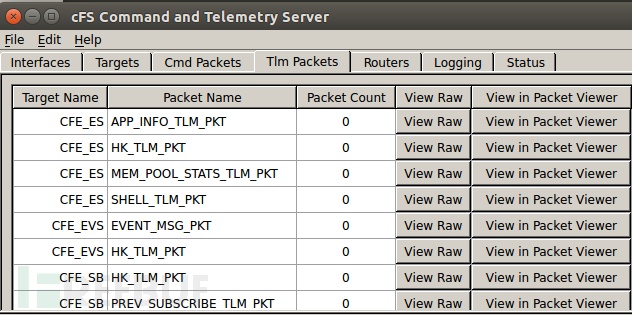 选择Tlm Packets选项卡后显示当前观测到的Telemetry数据包数量为零(如图6-7所示),表明未能接收到来自被测对象的Telemetry数据。