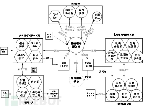 最中间的是一个测控指令型服务端(Command & Telemetry Server),它支持TCP、UDP以及串口等多种接口与卫星、飞行器等不同类型的航天器建立通信联系。