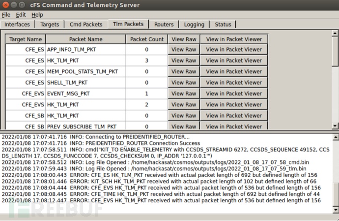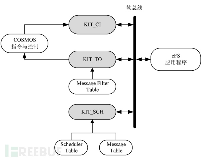 - KIT_TO(Kit Telemetry Output):通过软总线读取CCSDS格式遥测数据报(亦称消息),并将这些数据报发送回COSMOS系统。