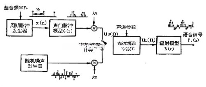 我们可将语音信号看成准周期序列或随机噪声序列作为激励的线性非移变系统的输出,此模型可分为三个部分:激励模型、声道模型、辐射模型