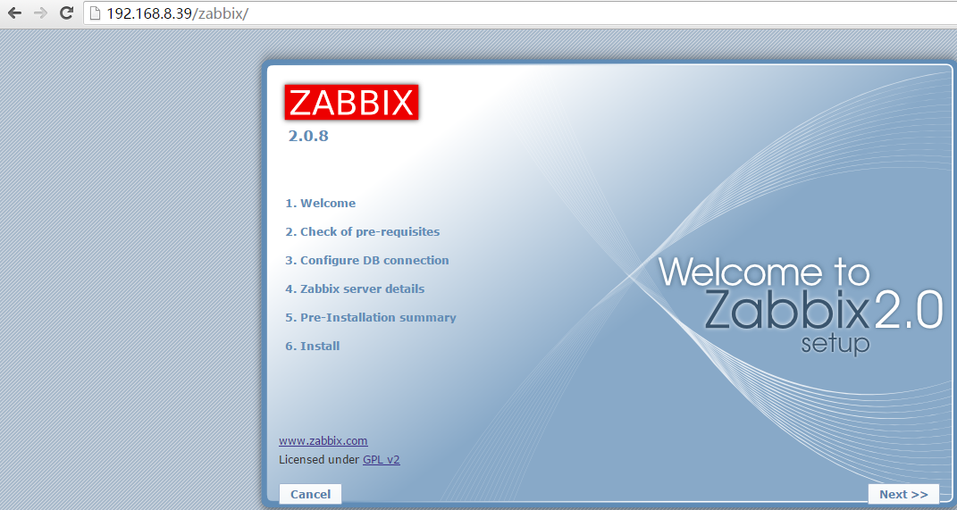 访问zabbix web页面开始配置