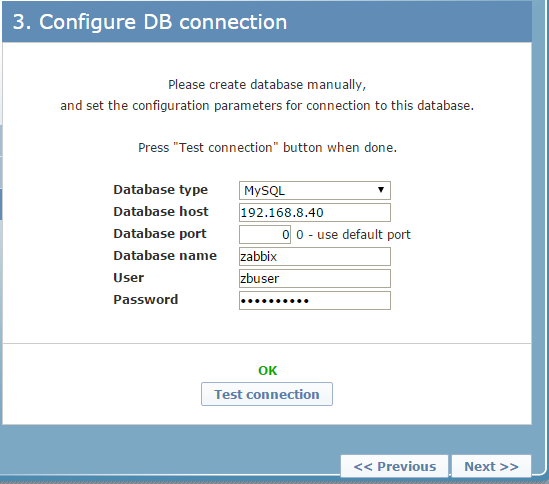 mysql> GRANT ALL ON zabbix.* TO 'zbuser'@'192.168.%.%' IDENTIFIED BY 'zbuserpass';