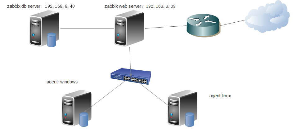 zabbix server :可以通过SNMP,zabbix agent,ping,端口监视等方法提供对远程服务器/网络状态的监视,数据收集等功能,它可以运行在Linux, Solaris, HP-UX, AIX, Free BSD, Open BSD, OS X等平台之上。