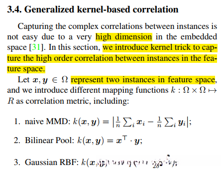 Gaussian RBF is more flexible and powerful in capturing the complex non-linear relationship between instances.(论文最后采用高斯kernel计算相关性,但计算量真的很大。。)