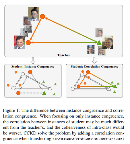 Usually, the embedding space of teacher possesses the characteristic that intra-class instances cohere together while inter-class instances separate from each other. But its counterpart of student model trained by instance congruence would lack such desired characteristic.