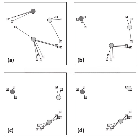 在每次迭代过程中,在初始化阶段我们随机生成初始质心;从第二个阶段起则基于上一轮划分结果计算各集群均值的位置作为新的质心位置;这就是为什么它被称为K-means聚类的原因。