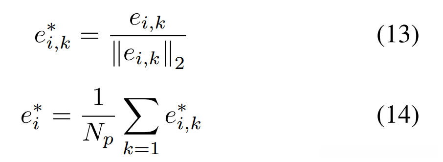 表示第i个点集中的归一化嵌入特征向量及其平均值: