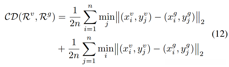 其中CD表示上述两组采样点之间的倒角距离: