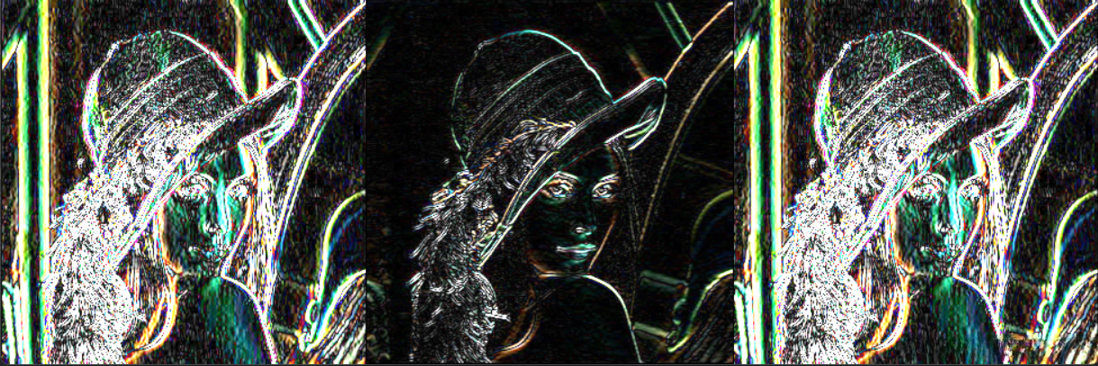 为了获得完整的边缘检测结果,则需将所有低于零的数值转换为其绝对值。