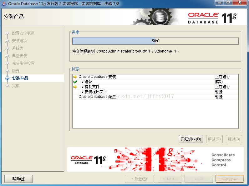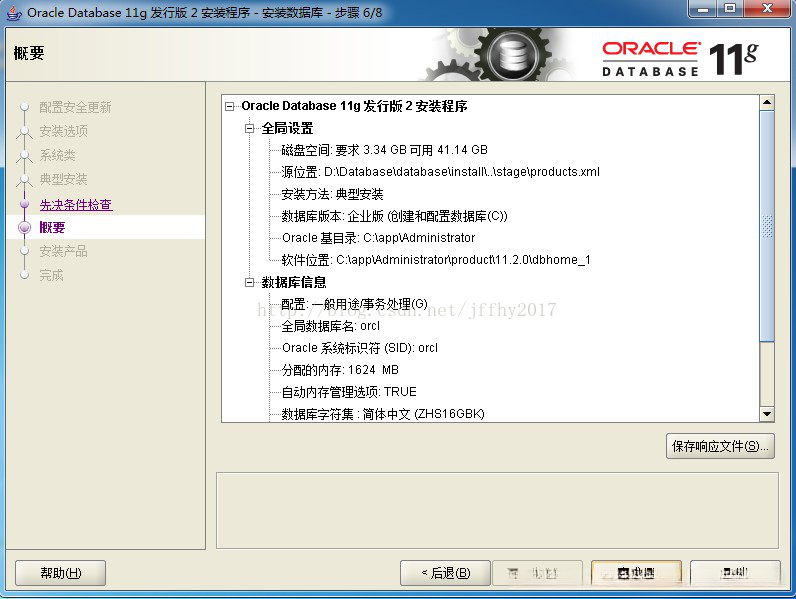 数据库配置文件已配置于C:\app\Administrator,此外还有其他选定的组件也已设置在C:\app\Administrator\product\11.2.0\dbhome_1。