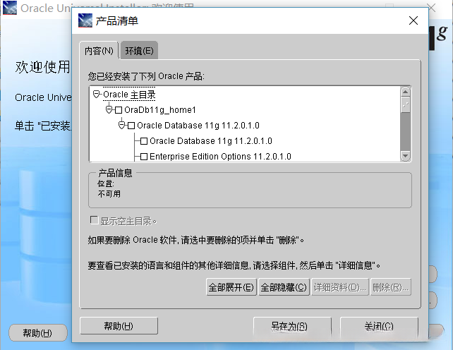 打开Universal Installer应用程序后选择卸载 Oracle 产品。