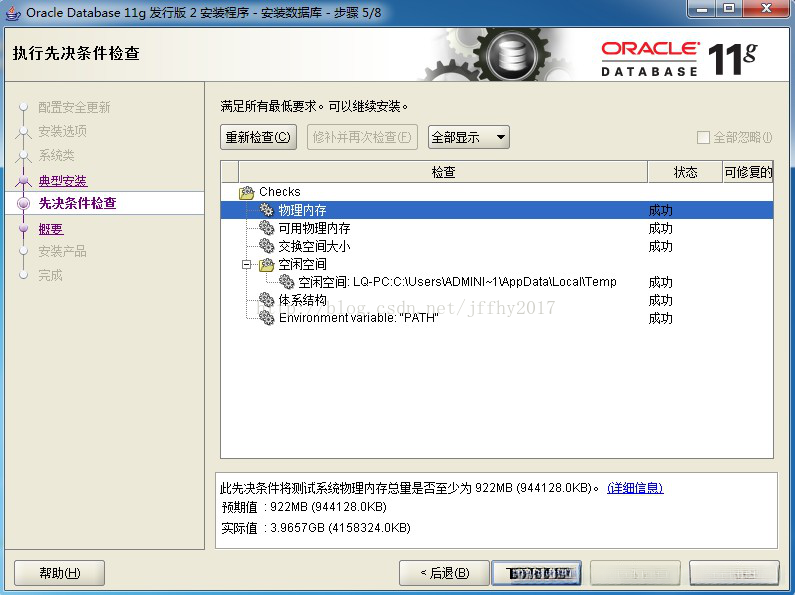 7、在“先决条件检查”窗口中,单击“下一步”: