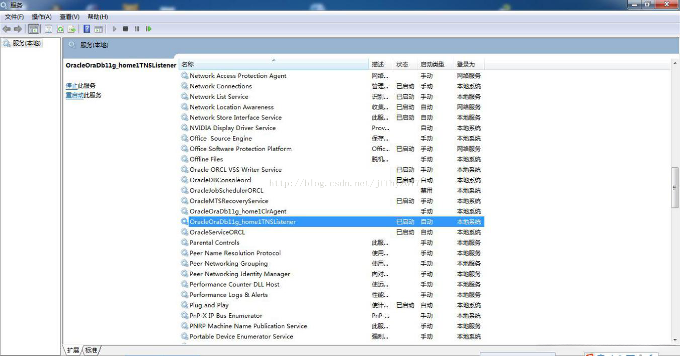OracleOraDb11g_home1TNSListener:标识为监听服务;如果客户端希望连接到数据库,则此服务必须开启。在程序开发过程中此服务同样发挥着关键作用。