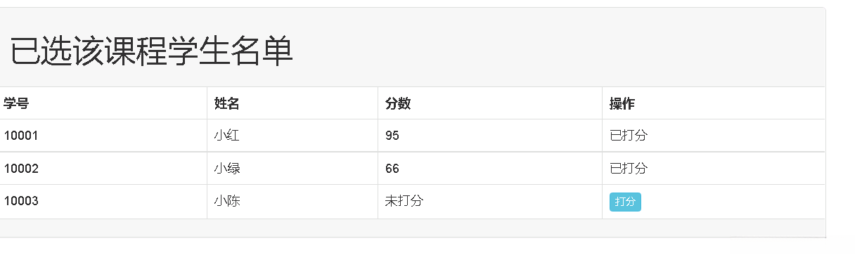 教师登陆后,可以获取其,教授的课程列表,并可以给已经选择该课程的同学打分无法对已经给完分的同学进行二次操作
