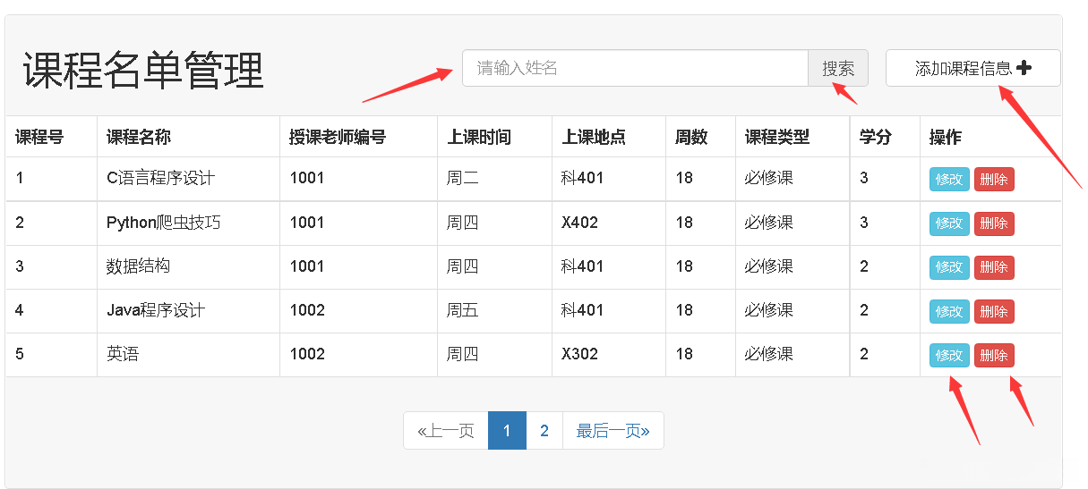 课程管理:当课程已经有学生选课成功时,将不能删除学生管理:添加学生信息时,其信息也会添加到登录表中教师管理:同上