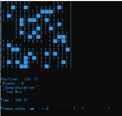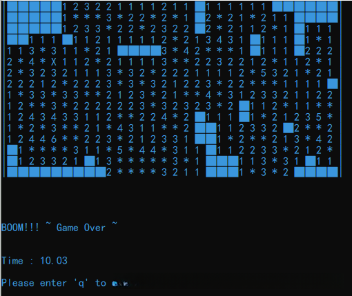 game.SetPosition(); //用于触雷失败时,将光标返回到触雷的位置,提示哪一步失败,同时触碰的雷也将显示为 ‘X’