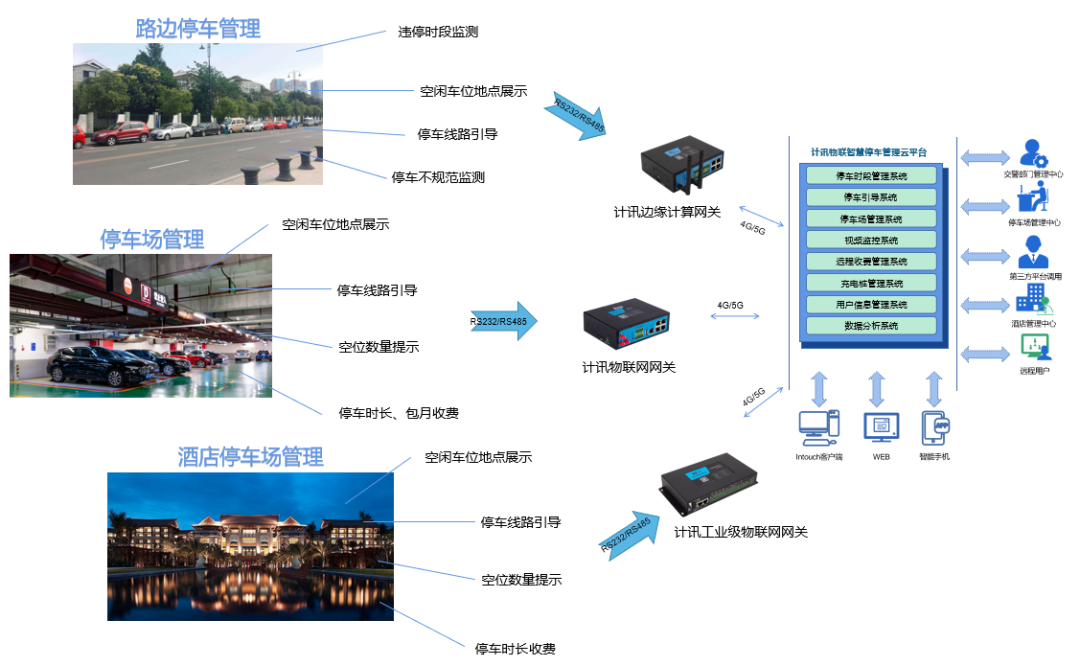 计讯智慧城市停车解决方案有效的结合了无线通信、图像识别、物联网、GPS、GIS、大数据等技术,集车位管理、查询、指引、缴费等功能于一身,同时具有路边定时定点停车管理、车位指引、共享车位、违法判断、入库判断、无人值守、无线支付、充电桩管理等功能,实现停车位资源利用率的最大化、停车场利润的最大化和车主停车服务的最优化。