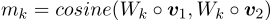 是从第 k 个角度得到的匹配值,它是计算两个权重向量之间的余弦相似度得到的