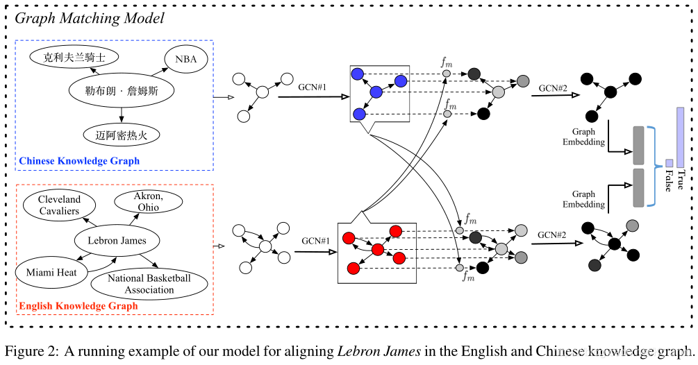 )中的每个实体是如何在另一种语言中进行匹配的。然而,它们都是 局部 匹配状态,不足以衡量图的 全局 相似度。例如,许多实体在