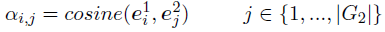 节点级(局部)匹配层 在这一层,我们将一个主题实体图中的每一个嵌入与另一个主题图中的所有嵌入进行比较,两个方向都进行(从G1到G2和从G2到G1),如图2所示。我们提出了一个注意力匹配方法,具体来说,首先计算