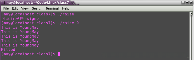 其中,在程序运行过程中通过打印发送了成功的信号。其原因在于9号信号立即终止了进程流程,并从而使得进程无法继续执行至该句。