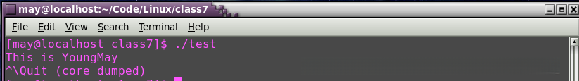 然后运行可执行程序,从而产生core文件: