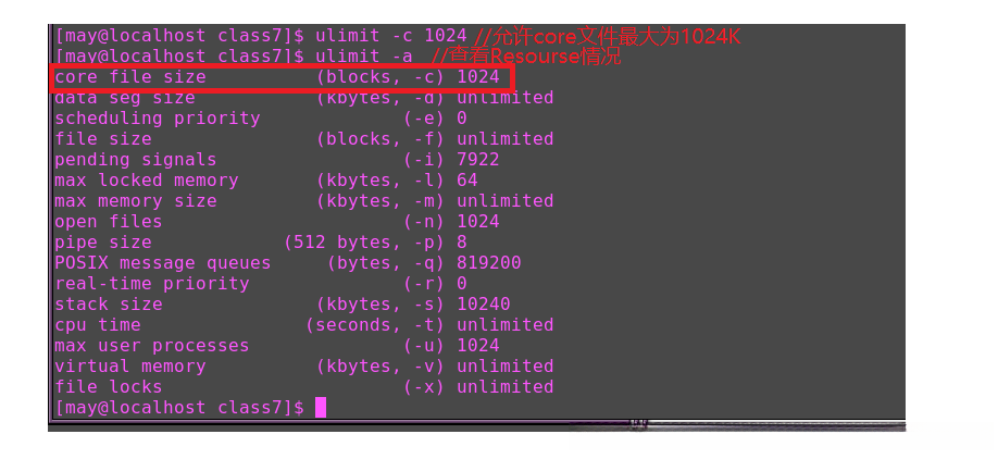 通过ulimit命令设置shell进程的Resourse Limit参数为最多1024K