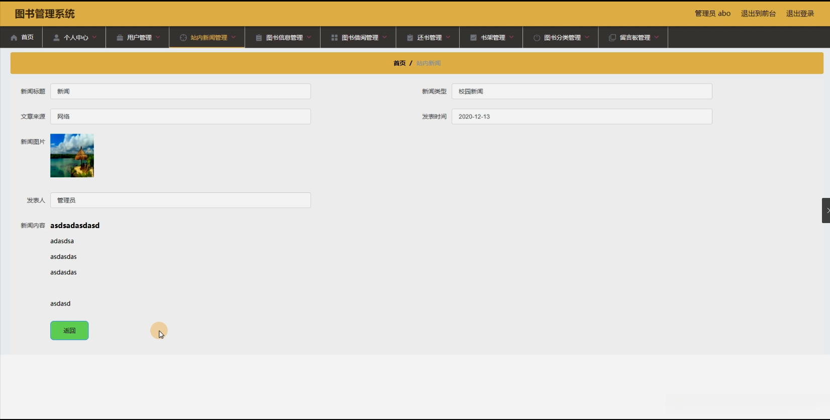 关于图书管理系统的研究,在现有研究聚焦于通用系统功能实现与优化方面的同时(即将借阅流程等常规操作进行优化),专门针对将站内新闻整合到图书管理系统中以及书架管理与图书分类之间的精细化关联等方面的研究相对较少(亦即在系统功能设计上存在一定的局限性)。因此本研究将以构建一个全面且功能深度整合的图书管理系统为研究背景(即在此背景下),重点分析如何使站内新闻更好地服务于图书管理(如通过推送新书资讯、阅读推荐等方式实现),同时优化书架与图书分类功能以提高图书管理效率的问题(进而探讨如何实现两者之间的深层整合)。本研究旨在探索图书管理系统功能深度整合的机制,并提出相应的改进策略建议(以便为其后续更加深入的研究提供理论基础)。在当前数字化时代背景下(尤其是在数字化转型不断深化的新形势下),传统的图书管理系统难以满足多样化的实际需求(因此对现有技术进行针对性改进具有重要的现实意义)。