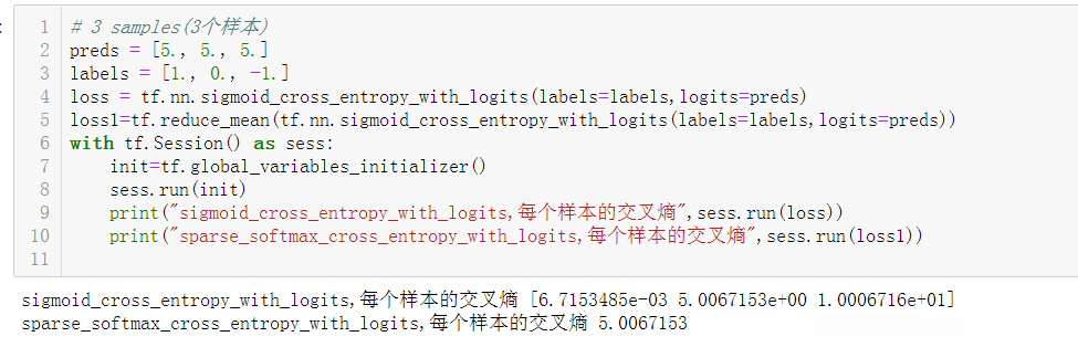 print("sparse_softmax_cross_entropy_with_logits,每个样本的交叉熵",sess.run(loss2))
