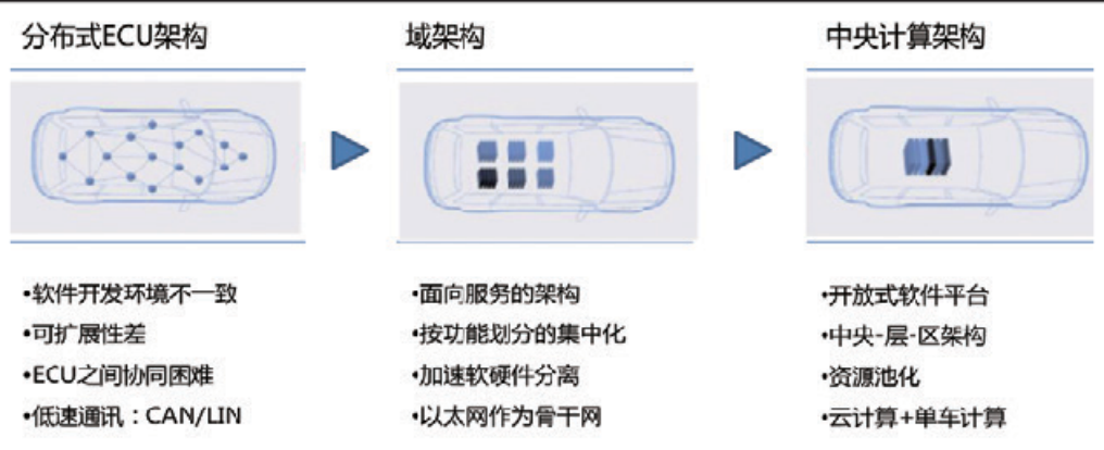图1 E/E架构由分布式-域控制-中央集中式不断升级