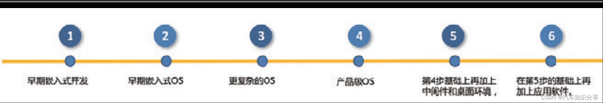 ②随着软件复杂度的上升,嵌入式OS逐渐形成。早期ECU 执行功能较为单一,早期嵌入式OS主要使用的基础软件程序或简单的嵌入式实时OS。