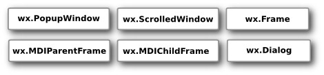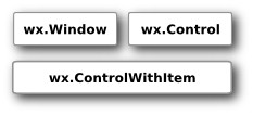 Button属于一类小窗口。它属于一类称为wx.Control的小窗口(值得注意的是,并非所有window组件都源自于此类别;例如,在某些情况下会有例外)。更具体地说, controls这样的组件能够放置在containers这样的容器之上。每一个window都可以响应事件,因此bottom按钮也具备这一特征——并且还继承了其父类属性——即wx.EvtHandler的能力。此外,所有的Python wx对象都源自于一个基础类——wx.Object类