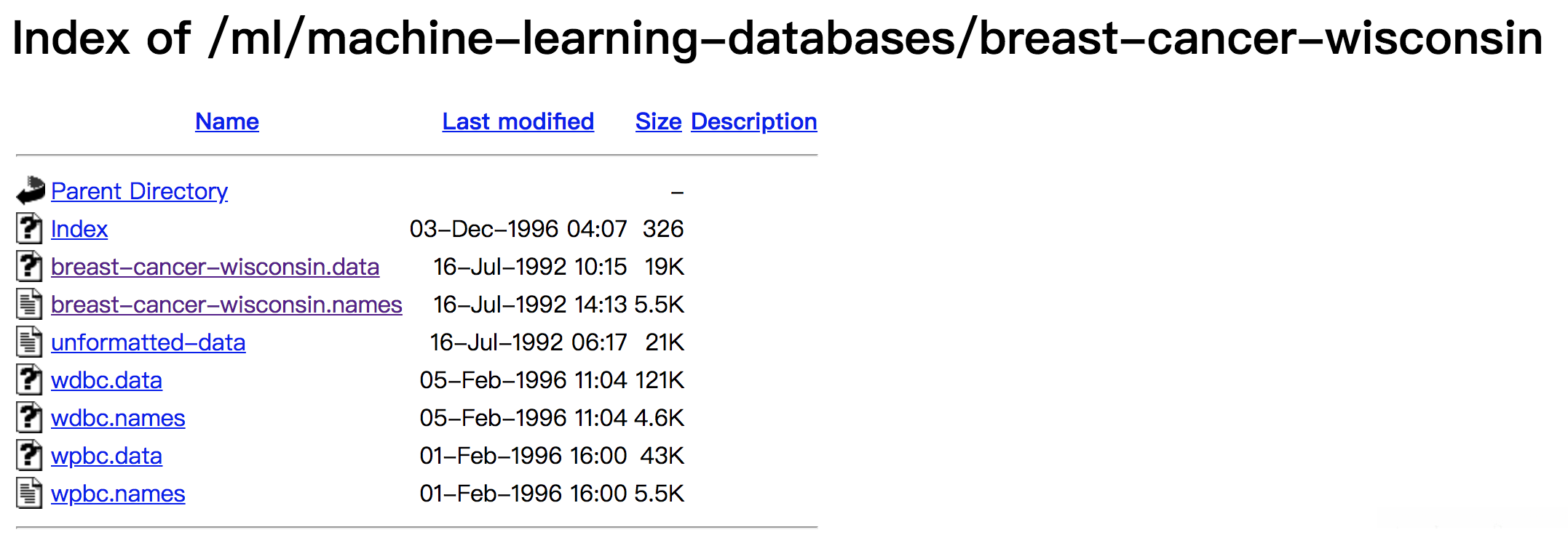 原始数据的下载地址:https://archive.ics.uci.edu/ml/machine-learning-databases/