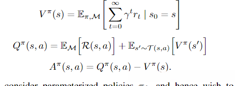- 我们还定义了value、Q和advantage函数: