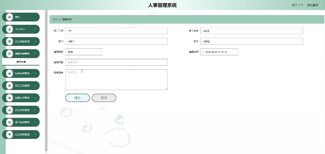 (b) 员工;员工使用本系统主要涉及的功能有:首页: 首页, 个人中心: 个人中心, 员工考勤management: 员工考勤management, 请假applicationmanagement: 请假applicationmanagement, 加班applicationmanagement: 加班applicationmanagement, 员工salarymanagement: 员工salarymanagement, 招聘planmanagement: 招聘planmanagement, 员工trainingmanagement: 员工trainingmanagement, 部门trainingmanagement: 部门trainingmeasurementmentology?, 工作 detailed management?
