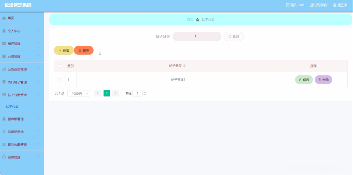 帖子分类管理界面图