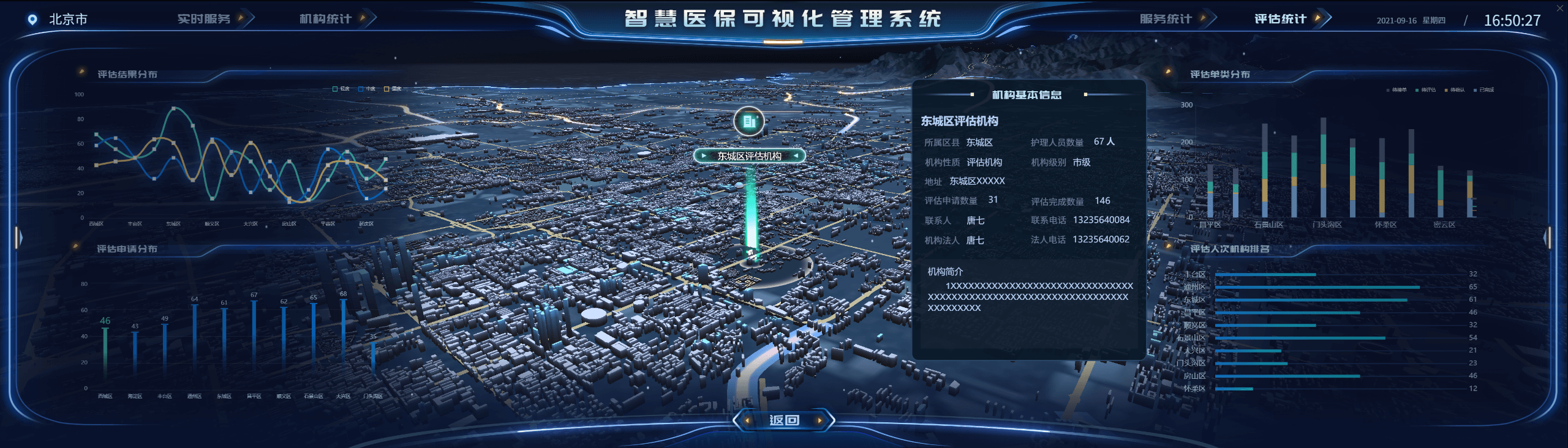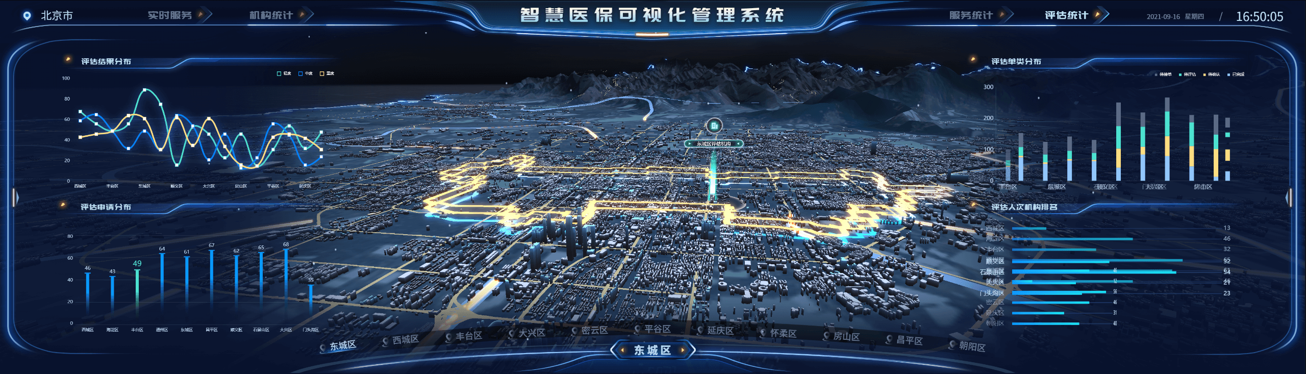 本系统主要面向医保管理部门,通过数字孪生技术将二维数据与三维GIS空间数据相结合,不仅可以全面接入现有医保的各项管理数据, 而且通过提升数据维度,实现了更加直观、精细化的医保管理,全面提升了医保管理水平。