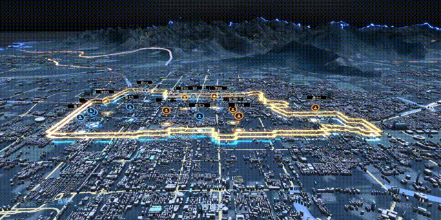 通过数字孪生技术对城市进行数字化还原,同时根据行政区划进行空间划分,不仅实现了数据的区域相关性展示,而且可以实现区域的数据联动。
