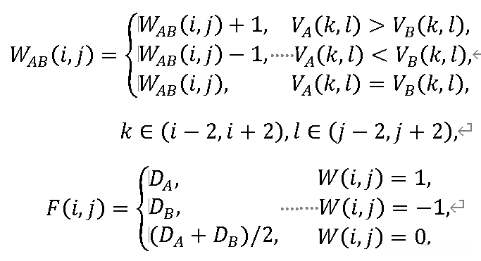 这两个多源图像的信息能够被表征为{{D_A, D_B}};其中,D_A,D_B∈RH×W;从而获得相应的稀疏矩阵 E_A 和 E_B;进而计算出对应区域内的方差矩阵 V_A 和 V_B;这些结果将被用作融合的基础依据