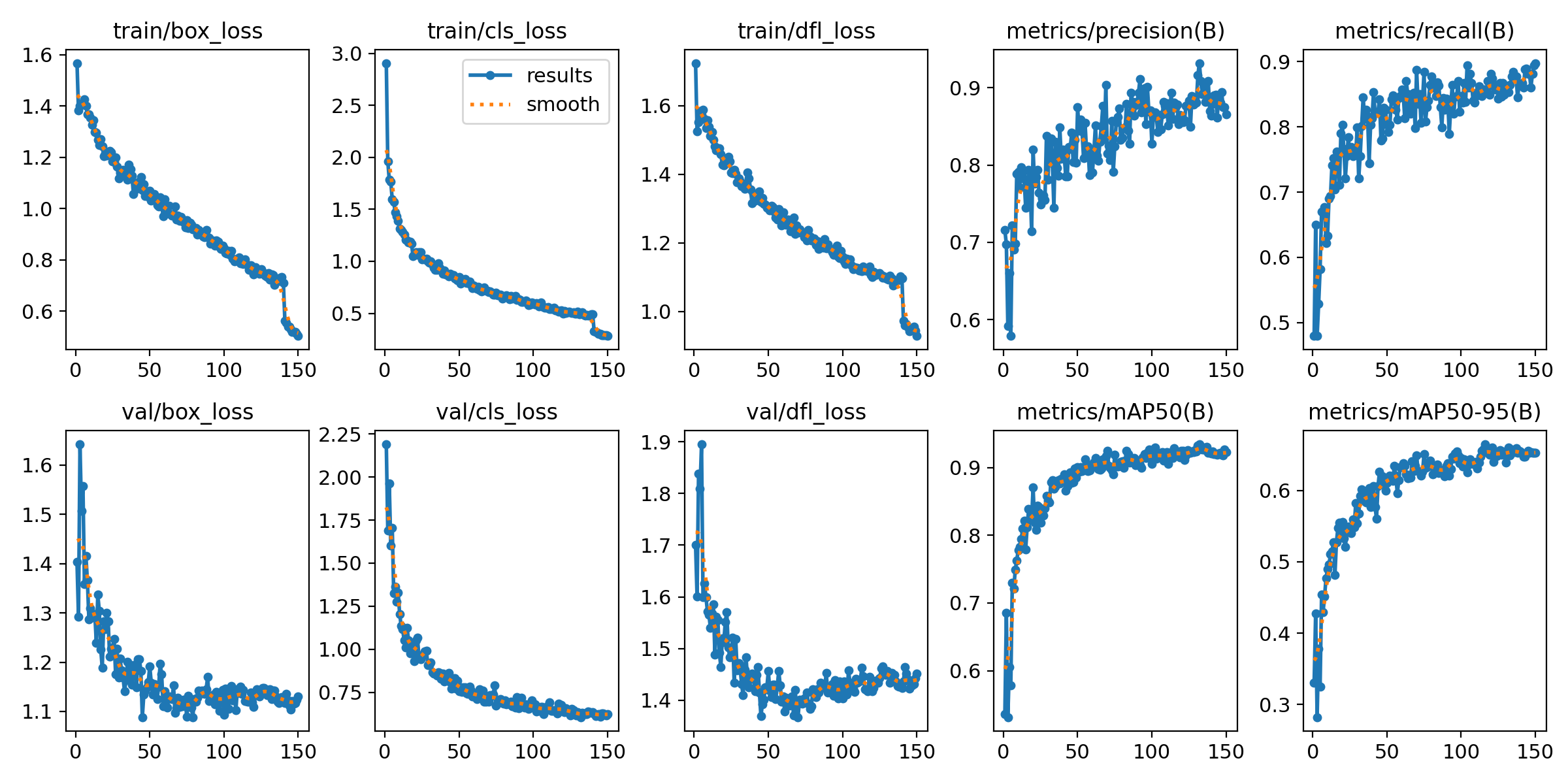 趋势分析显示,在训练过程中mAP@50值持续提高。这一现象表明模型的分类性能在各个类别中均有显著增强。