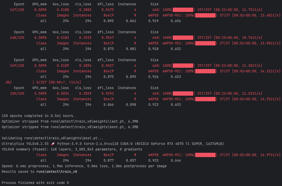 (4)训练结果将被存储在名为train_v8的目标目录下。