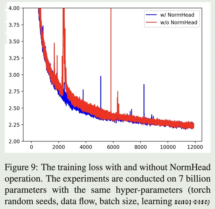 研究表明,在KNN检索任务中语义信息主要来源于嵌入空间中的余弦相似度编码而非L2距离这一特性具有一定的局限性为此我们需要深入分析现有方法的工作原理现有方法通常采用点积运算来生成logits值这一过程结合了L2范数与余弦相似度两种指标为了进一步验证这一假设我们在附录部分补充设计了一个消融实验该实验结果表明当去除NormHead设计时模型训练过程会出现显著稳定性问题从而为后续优化方案提供了重要参考