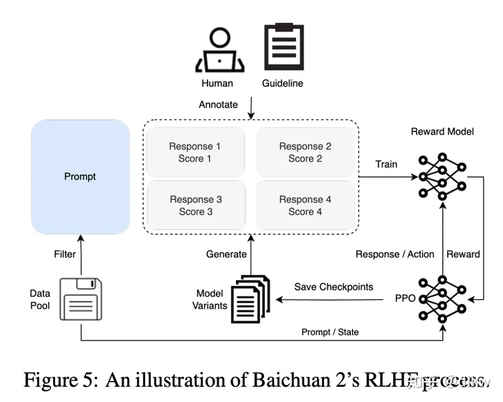 Baichuan 2 的对齐机制主要包含两个关键组件:监督微调技术(SFT)以及基于人类反馈的强化学习方法(RLHF)。