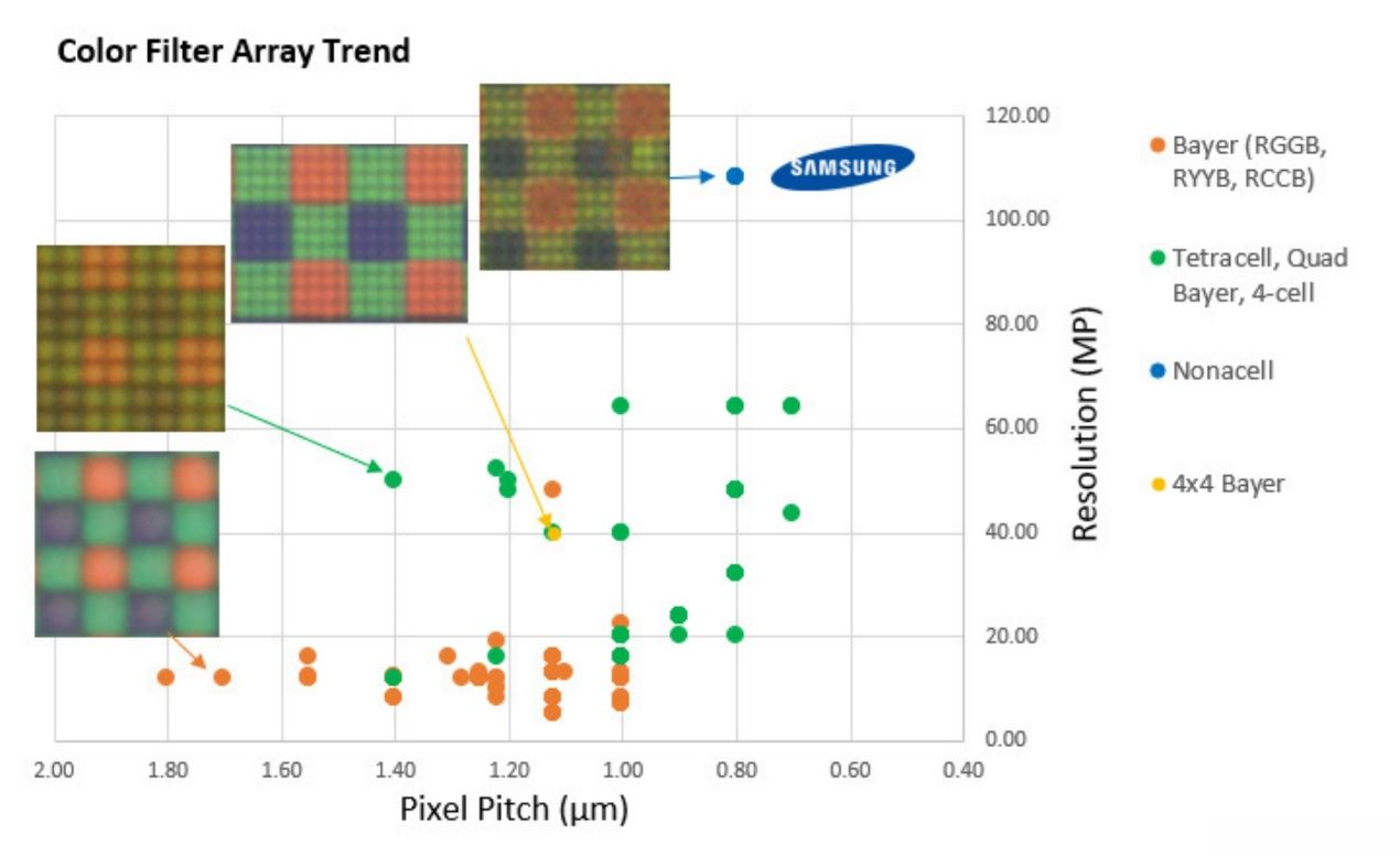 据TechInsights表示,在像素尺寸持续减小时(当像素尺寸持续减小时),我们将会见证更高密度的3×3和4×4色列阵列方案(将推动采用更高密度的3×3和4×4色列阵列方案)。