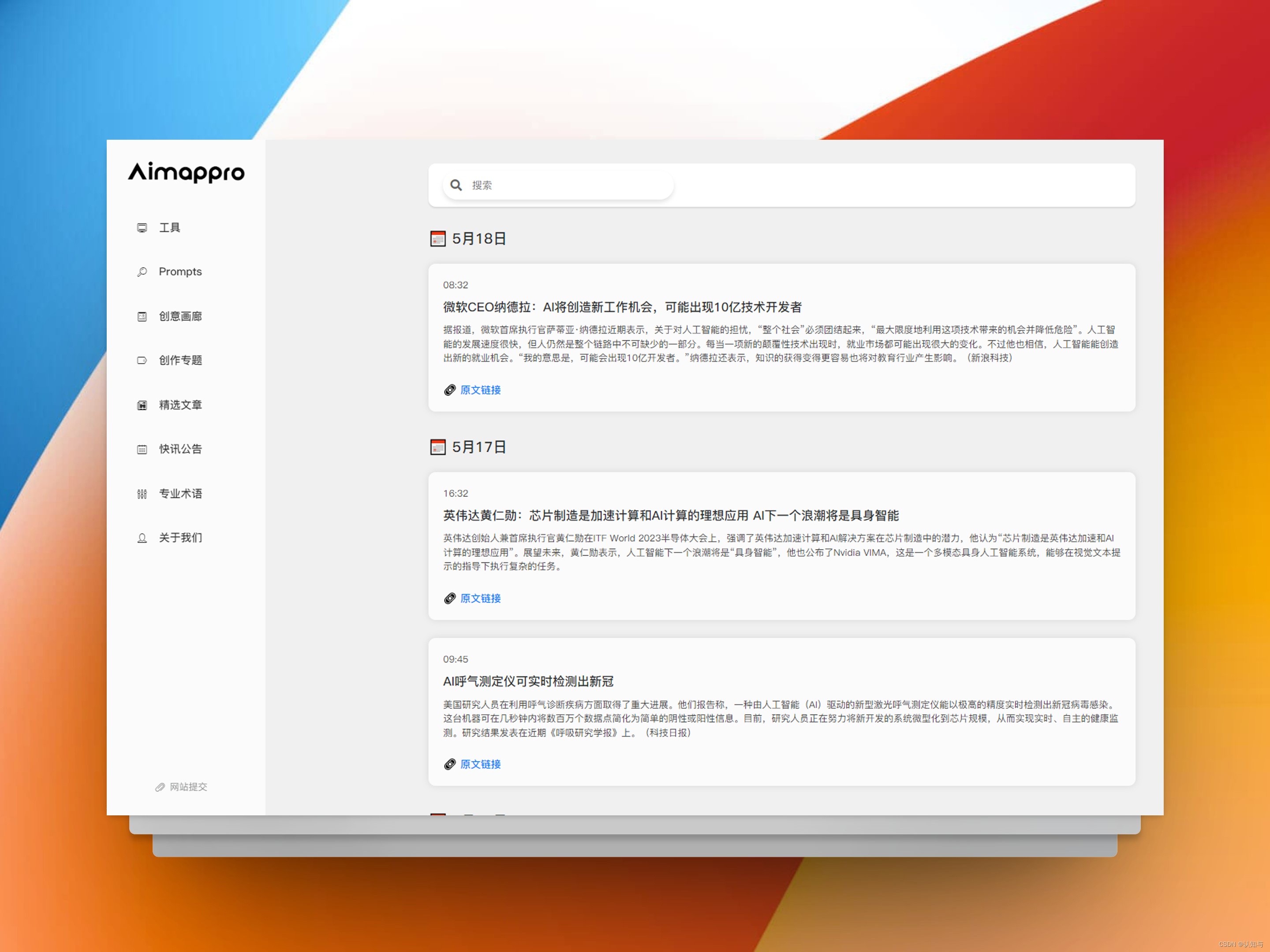 AI快讯公告:AiMapPro不仅提供最新的行业资讯及动态,还帮助用户及时掌握行业动态的变化趋势;助力您把握技术发展的脉搏